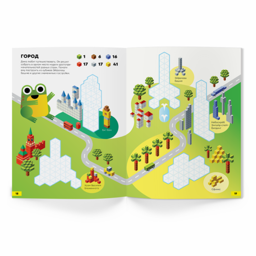 Например, для постройки бассейна для лягушонка нужно использовать 10 красных кубиков и 6 жёлтых.