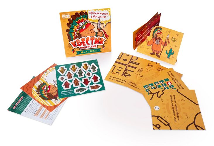 В наборе 5 карточек с подсказками, каждая указывает путь к следующей: