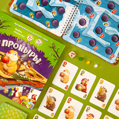 В «Пронырах» несколько вариантов правил для игроков разного возраста: в начальной версии осваиваем и тренируем порядковый счёт, а в более сложных — навыки сложения и вычитания, состав числа и логическое мышление. В игре можно «обскакать» другого игрока, поэтому она подойдёт всем, кому близок дух азарта и соперничества!