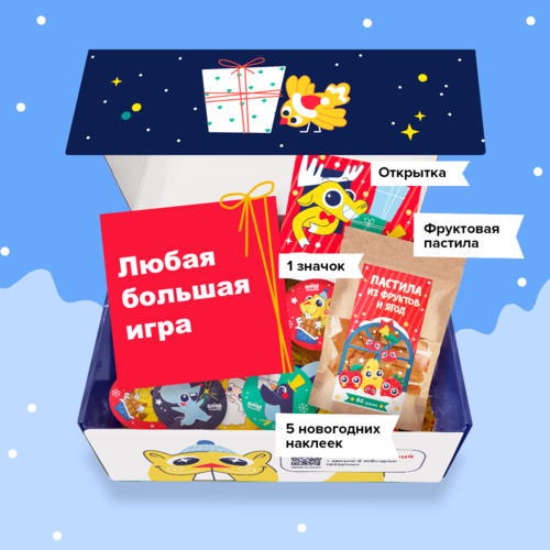 5 круглых наклеек с праздничными героями, которые поселятся на тетради, планшете и ноутбуке;