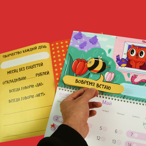Чтобы закрепить привычку нужно выполнять одно и то же действие регулярно. Яркий календарь с наклейками всегда напомнит, что вы на пути к большой цели. Стоит только выбрать челендж месяца, например, вовремя вставать по утрам. Каждый день, когда вы осуществили задуманное, отмечайте наклейкой — и вы не заметите, как спустя месяц уже закрепите полезную привычку.