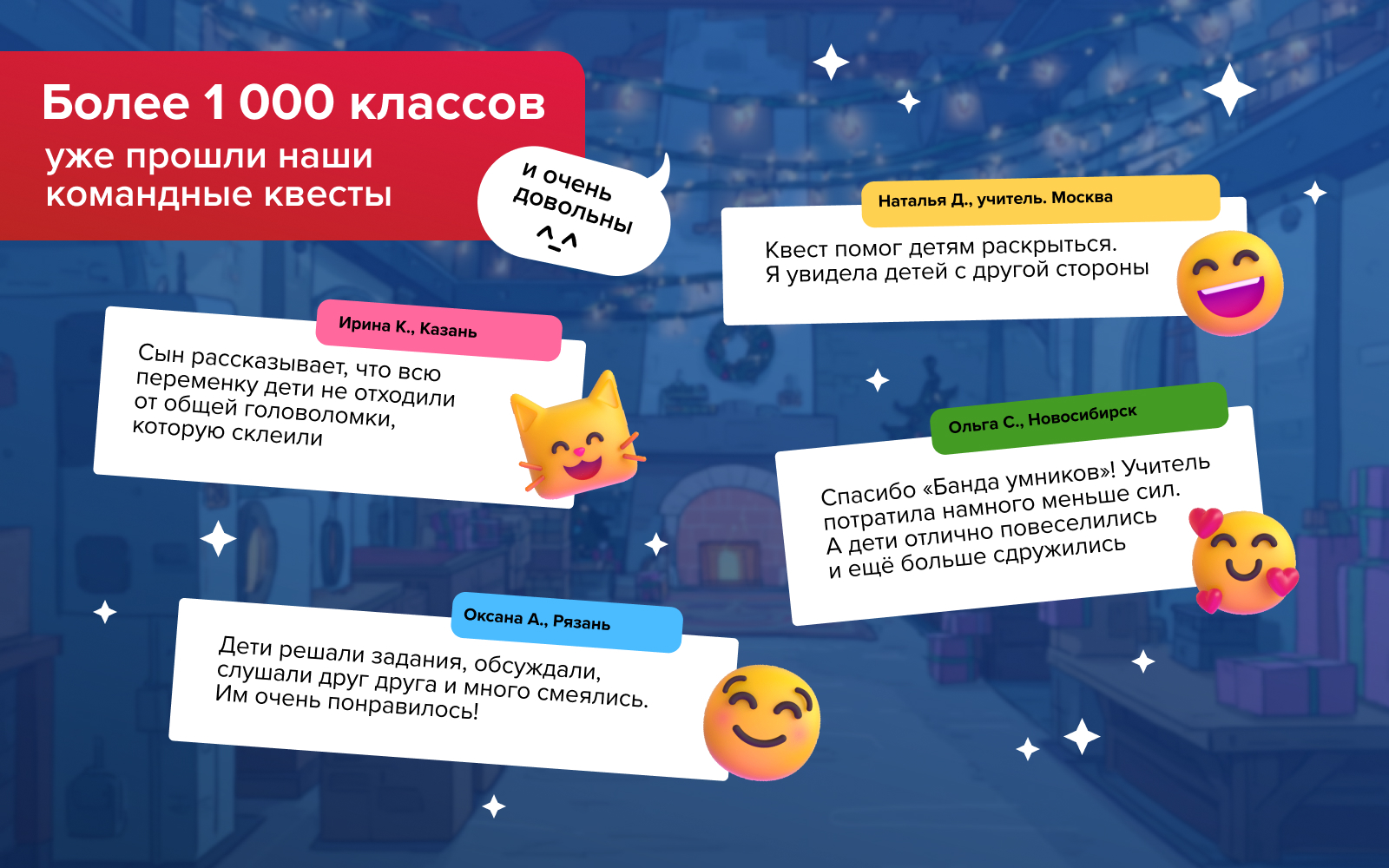 Квест можно провести на классном часе или школьном празднике. Ребята лучше узнают друг друга и получат опыт совместной работы, научатся поддерживать друг друга и находить решения сообща. Каждый ученик почувствует, что он очень важен, и без его участия команда не справится!