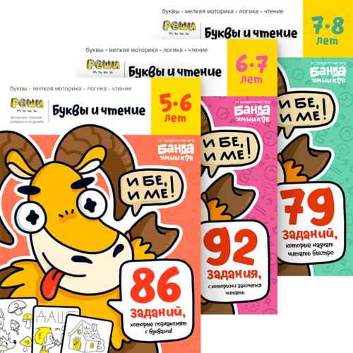 Задания спроектированы так, что ребёнок, решая их поочерёдно, самостоятельно закрепляет знание букв, учится складывать их в слова.