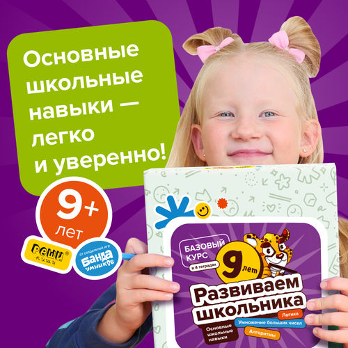 Тетрадь «Реши-пиши, 9–10 лет». В тетради 23 варианта заданий от лёгкого к сложному. Задания помогут развить логическое и пространственное мышления, разобраться в счёте и числовых рядах и прокачать навык чтения. |