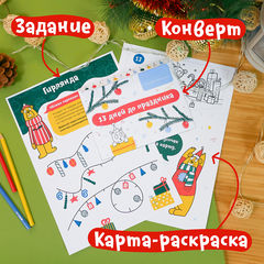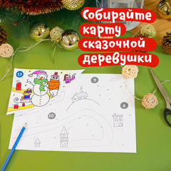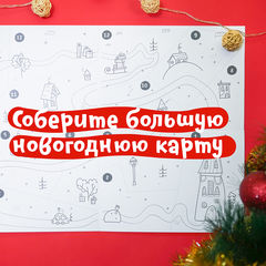 Начнём Адвент с большой новогодней карты, по которой мы будем путешествовать вместе с Медведем: поможем ему делать добрые дела и творить маленькие чудеса. Карта — это ещё и огромная раскраска формата А2, которую в конце Адвента можно превратить в игру-ходилку.