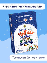 Вы удивитесь, но зимой люди используют до 800 слов, которые почти не произносят летом! Мы выбрали самые распространённые из них, и получился новый «Зимний Читай-Хватай»: такой же интересный, но со скрипящим под ногами снегом и запахом мандаринов. В коробке — настоящая зимняя сказка: «ель», «санки», «варежка», «снегирь» и «Дед Мороз»!