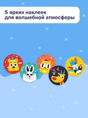 - 5 круглых наклеек с праздничными персонажами, которые поселятся на тетради, планшете или ноутбуке — и будут радовать целый год.