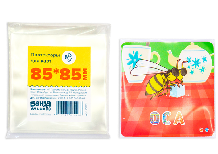 Такие протекторы как раз для того, чтобы сохранить маленькие квадратные карты в «Зверобуквах» и «Зверобуквах English».