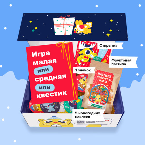 Упаковка идеально подходит для малых и средних игр «Банды умников». А ещё можно выбрать в подарок новогодний квестик!