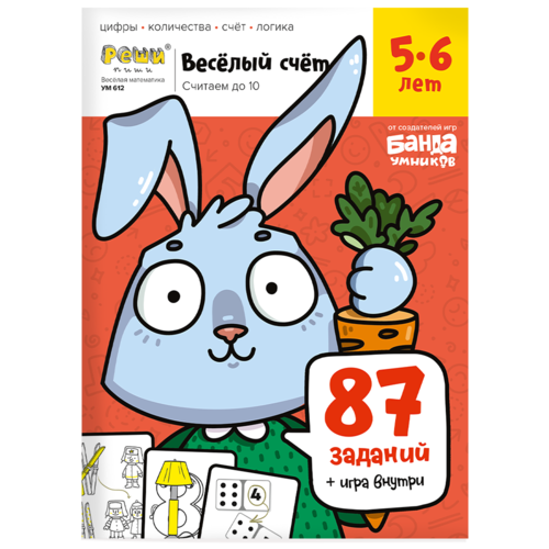Счёт до 10 — это одна из первых ступеней на пути подготовки к школе. С него начинается знакомство с миром математики. В тетради «Весёлый счёт» для 5–6 лет малыши знакомятся с базовыми математическими понятиями с помощью наглядных примеров из реальной жизни. Например, образы цифр легче запомнить, когда ищешь нужные свечи для именинного торта, а числовой ряд проще понять, если искать своё место в кинотеатре.