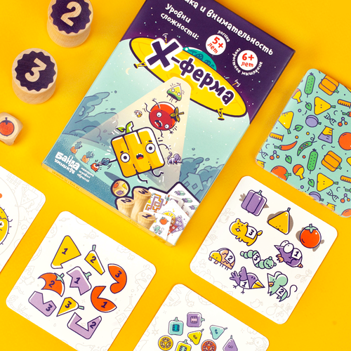 В игре используется семь типов заданий и кубик с дополнительными условиями. Эти элементы делают игру вариативной и надолго удерживают интерес детей. Задания ориентированы на логическое и пространственное мышление, скорость реакции и быстрый счёт. Увлекательная игровая механика «X-фермы» помогает весело развивать эти навыки в кругу семьи!