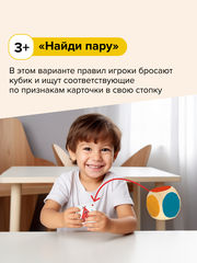 В игре нет одинаковых карт. Главная задача — находить пары животных по схожим признакам. Варианты правил адаптированы под разные возраста: от поиска пар до соревновательных заданий, которые добавляют элемент весёлого челленджа. А дополнительные карты-джокеры развивают внимательность и скорость реакции.