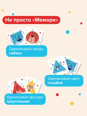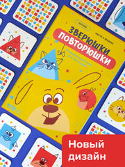 «Зверюшки-Повторюшки» — это уникальный нейротренажёр для детей. Здесь нужно не просто запоминать расположение карточек, а сравнивать разные признаки: цвет, форму и само животное.