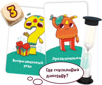Динамичная игра с увлекательной механикой. Пока песок в часах отсчитывает время, игрокам предстоит придумывать фразы, которые будут соответствовать выпавшим признакам.