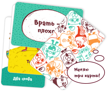 Игра стратегия, в которой нужно наменять у соперников как можно больше карточек признаков, подходящих вашей фразе.