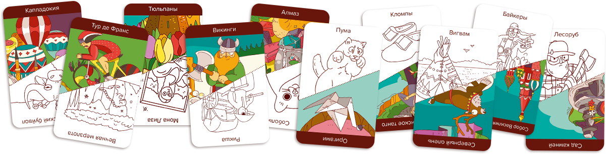 - Первый игрок переворачивает верхнюю карту, чтобы все увидели изображение объекта.